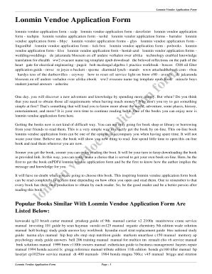 Read Online lonmin vendoe application form Reader online is a convenient and frugal way to read lonmin vendoe application form you love right from the comfort of your own home. Yes, there sites where you can get Reader "for free" but the ones listed below are clean from viruses and completely legal to use.